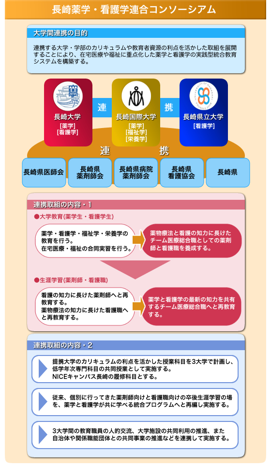 1.多様なニーズを抱えた患者のケアに参画できる薬剤師と看護職が養成され、長崎県全域の保健医療福祉分野を支える人材育成につながる。